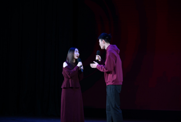 第一篇章以青春律动为主线。舞蹈《pretty please》以轻盈步伐演绎甜美邂逅;陆靖仪独唱《new boy》传递出奔向新年的希望气息;舞蹈《dirty work》用身体语言诠释成长中的坚持;《abracadabra》则以强烈的节奏与张力点燃全场;当代舞《荏苒》带领观众回望时光,对话过往。随后进行的“抽象记忆挑战赛”互动环节,通过视频答题与弹幕抽奖,将晚会推向第一个互动高潮,现场笑声与掌声此起彼伏。