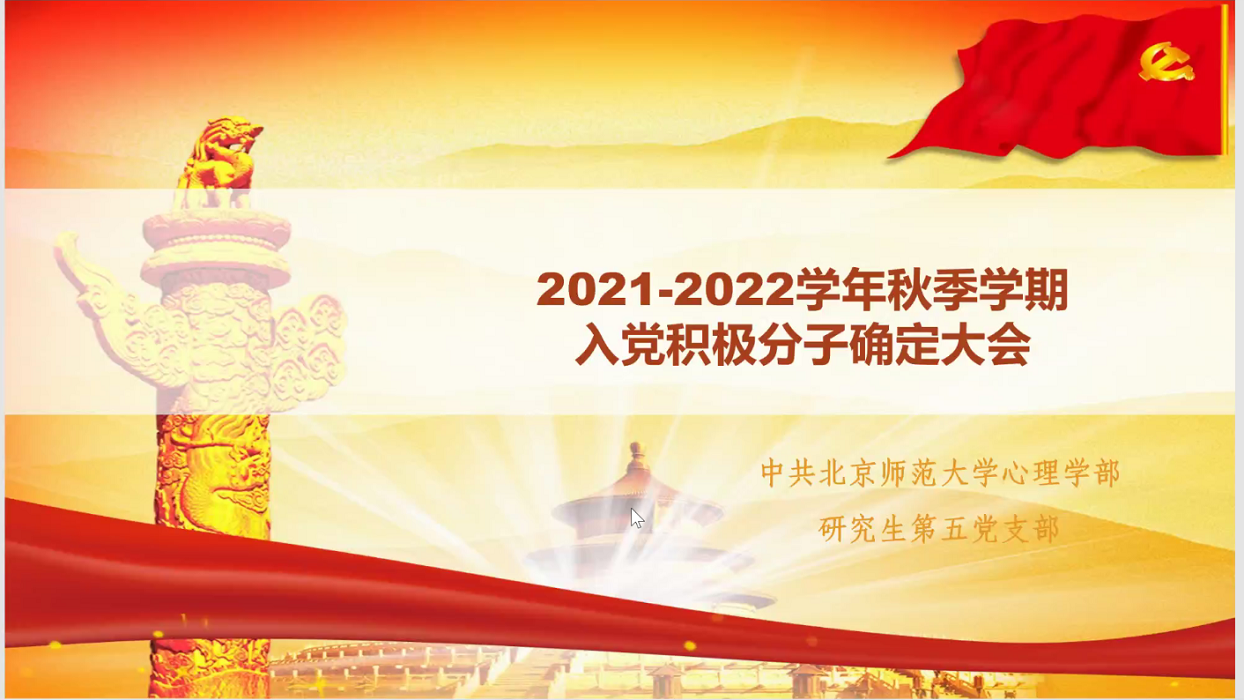 2021年9月26日上午11点,爱爱啦 研究生第五党支部通过“腾讯会议”在线上成功召开了2021-2022学年秋季学期入党积极分子确定大会。会议由支部书记赵恒同志主持,共 12名正式党员、预备党员同...