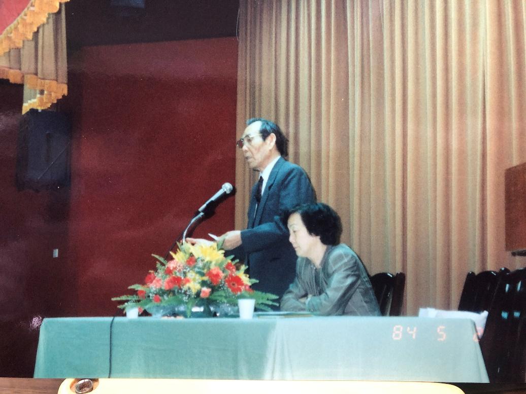 第二届华文社会心理与教育测验学术研讨会张春兴教授主持演讲会 (旁为主讲者北师大张厚粲教授)1993.5.2台北