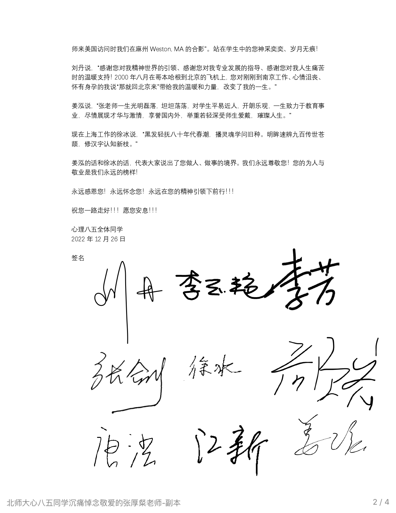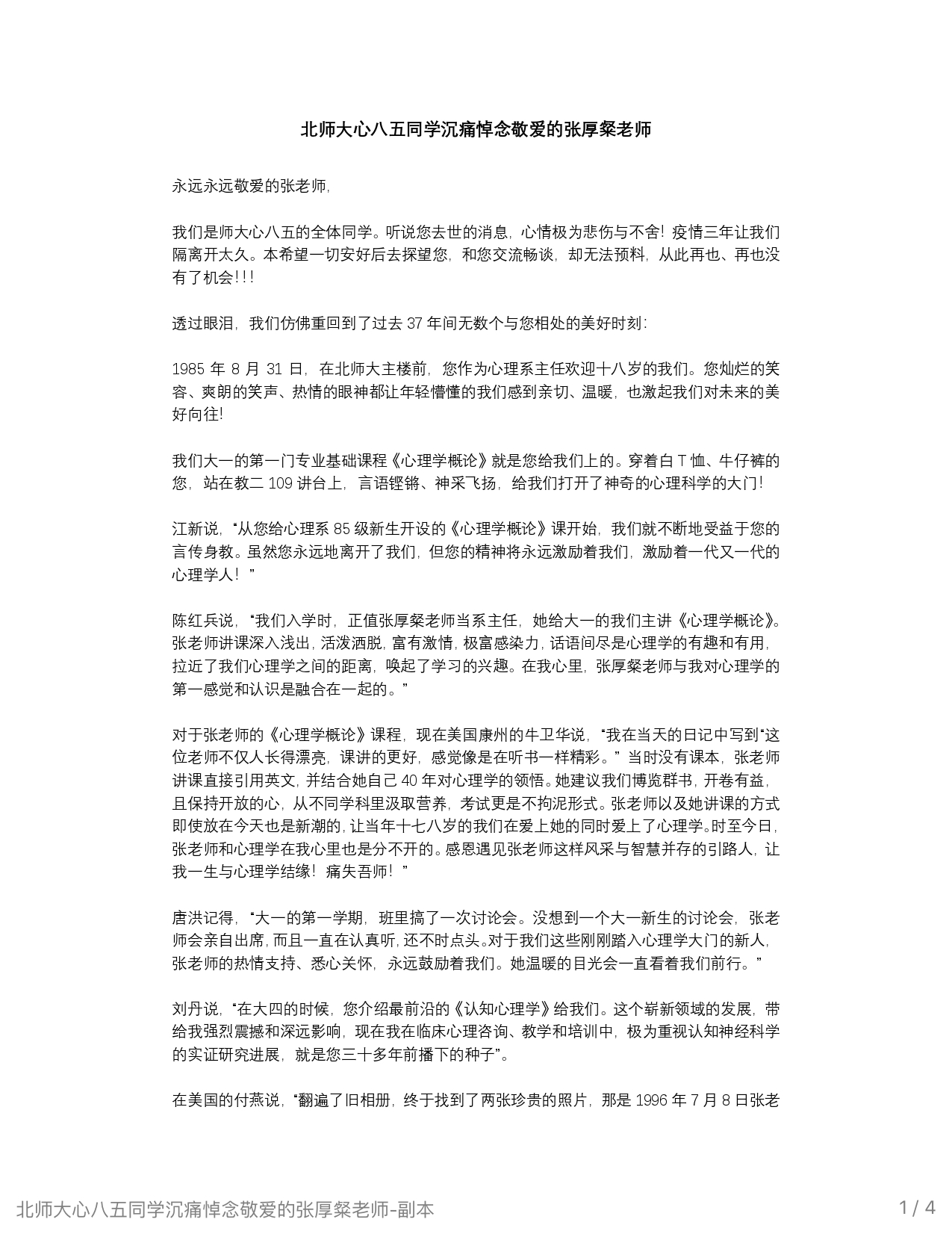 | 悼念张先生