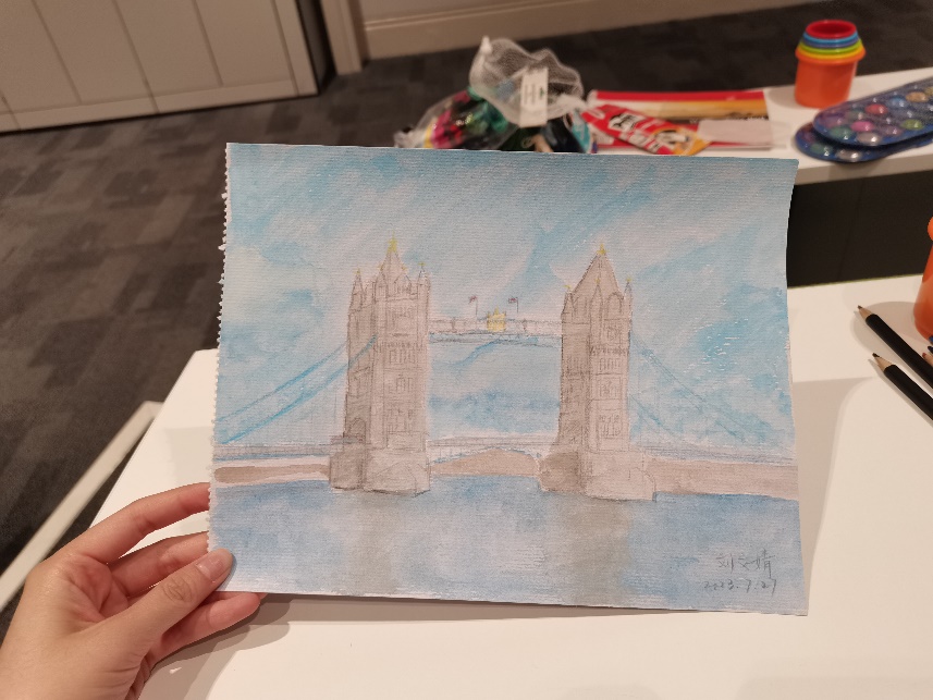 每一次去到不同的地方,我的脑海里就出现同一句话:生活在别处。卢梭在《忏悔录》中用此表达对自己生活和决策的一种反思和自省:“Je vais me tracer un nouveau plan de vie.” 而我只是觉得我对伦敦的向往和担忧不过是对另一种生活的渴望。而所有的体验都只是生活的一部分。 课余时间我们一起游玩了伦敦。伦敦的标志性地标里我最喜欢伦敦眼。这座位于泰晤士河畔的壮丽摩天轮,静静地矗立在城市的心脏地带。它高耸入云,轮廓柔和流畅。白天,阳光跳跃其上;夜晚,繁星点缀其间。注视着它的旋转,仿佛能听到静谧的旋律。它如同一位智者,静静地观察着这个城市。大英博物馆更是向我展示了人类文明的壮丽。步入博物馆,我仿佛穿越到了不同的时代和文化中。各式各样的珍贵文物陈列其中,埃及法老的石棺、古希腊的雕像、中国的青铜器等,无不彰显着人类智慧和创造力。我被人类的多样性和共通性所震撼。 伦敦的每一个角落都弥漫着浓厚的文化氛围。古老的建筑、现代的艺术品、街头艺人的表演、路边艳丽的花朵,构成了一幅充满活力的画卷。在KCL举办的绘画活动中我用湖蓝色涂满了画纸——这是我眼中伦敦的颜色。