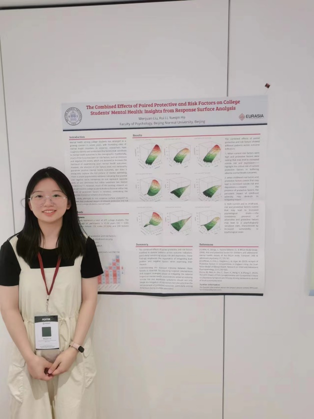 2024年5月13日至2024年5月14日,我参加了在奥地利维也纳举行的第4届世界心理学与行为科学大会。此次会议上,我进行了题为《The Combined Effects of Paired Protective and Risk Factors on College Students' Mental Health: Insights from Response Surface Analysis》的海报汇报。这次会议包含认知心理学、发展心理学、健康心理学等多个主题的汇报,我收获良多,了解了心理学最新的发展与研究方向。 在这次国际会议上,我的海报汇报主题是探讨保护因素和风险因素如何共同影响大学生的心理健康。近年来,大学生心理健康问题日益突出,传统上的研究多关注风险因素,如压力和负性生活事件,这些因素被认为会增加心理健康问题的发生率。然而,没有风险因素并不一定能保证就有良好的心理健康。心理学研究表明,风险和保护因素并不总是同一维度的两个极端,而是构成了两个独立的维度。因此,本研究试图通过响应面分析探索保护因素和风险因素对大学生心理健康的共同影响。