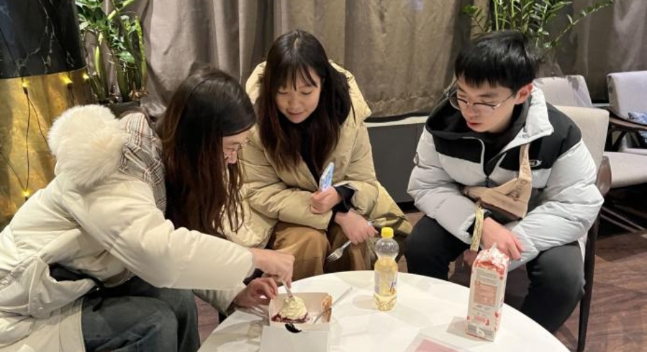 那天晚上,我们买了一个小小的蛋糕,为组内恰好生日的同学唱了生日歌。在紧张的学习日程中,我们也在慢慢学着沉下心去感受、去珍惜。