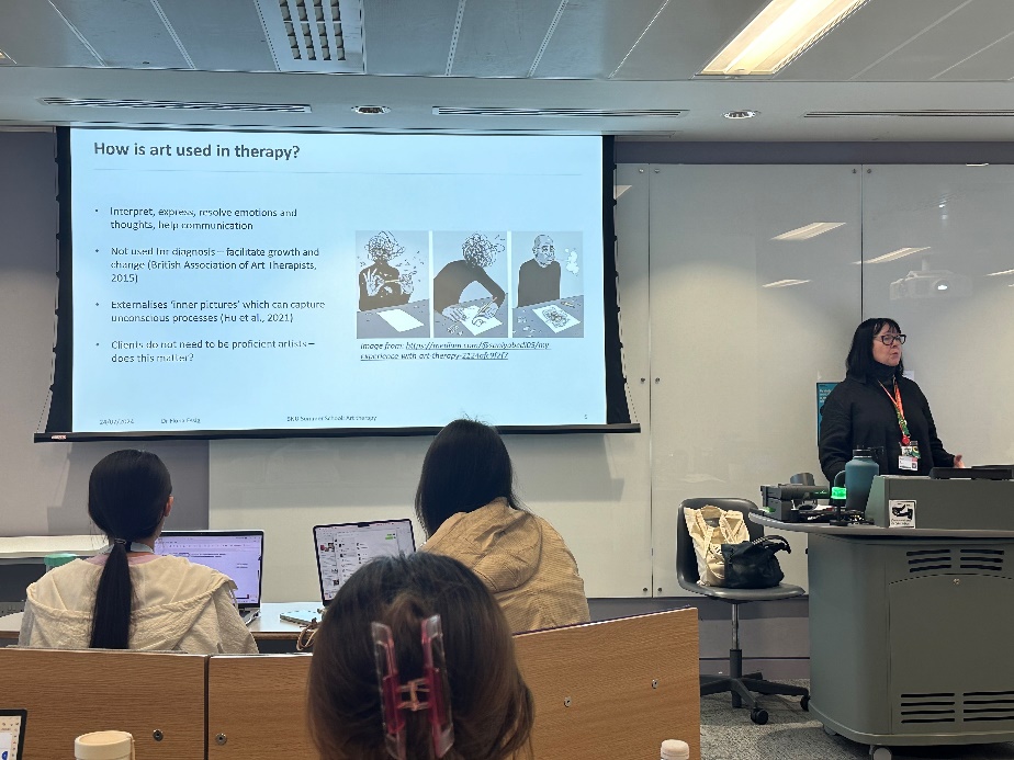 图1 伦敦眼 当然,KCL对我来说也是如此。KCL和国内的大学很不一样,它主要由两栋建筑构成,与附近的考文特花园相融在一起,没有国内大学高高竖起的围墙。进入bush house内部,咖啡店飘出咖啡的香气和可颂的焦香味,虽然标着一罐可乐近20块的高昂物价,还是引人忍不住想买上一份。还有专供学生自习、休息的七楼八楼活动室——我就是在七楼写完了支教教案。那里明度适当的彩色装潢、每个座位旁配备的足量插座、足够隐秘的讨论间布置都让赶教案的我十分舒适。 也就是在KCL沙发式的小教室里,我们上了两周的心理学课程。这次暑期交流项目是KCL校方为北师大专门定制的,主要分为三个方面的内容:行为决策与干预、心理学研究方法和艺术治疗。每个模块的内容包含三天的体量,最后一天进行小组课堂汇报。 第一个模块的课程是行为决策与干预,由Claire Heard博士为我们授课。她讲课的风格生动活泼,常举一些生活中的例子帮助我们更好地理解决策相关的内容。比如,在最开始讲授启发法时,她举了购房者看房子的例子,让人很有代入感,以至于在她还在讲启发法类型的时候,我们已经跳跃到了“我自己看重房子的什么特质”,忽略了题干的要求,几乎所有人都选了错误的答案。此外,她还涉及了法律、商业、医疗、文学等多个领域决策心理学的应用,让我们受益良多。其中,她拿出一个下午的时间与我们探讨故事撰写。她将我们分成两组,每组需要构想出一个故事,而这个故事根据添加不同的人物在细节处的抉择能够产生不同的解释。这是我第一次体验到这类工作坊创作的快乐。同时我也体会到,像这样的探讨在我之前受到的教育中是极为稀缺的。在以前的写作课上,老师更多需要的是我的结果:也就是我交上去的这个故事是不是足够拿高分。但实际上,一个故事只是走了人物各个节点所作抉择的其中一条支线而已。Claire更关注故事的过程。我们组编的故事结构略简单,她还质疑了不同故事可能性的逻辑合理性。我一开始还在和朋友吐槽,觉得这里的课程略简单,很多我们在之前就已经学过。但三天之后我意识到,虽然知识点已经学过,但我们的心理学视角是不同的。至少对我来说,第一节课学习启发法时,我完全没有把它和普通心理学课上学过的内容有意识地链接起来。视角变化,我对同一项知识的理解也更深厚了。 第二个模块的课程是心理学研究方法。这一部分的第一天,我们主要学习了患者及公众参与(public patient involvement, PPI)的概念。PPI包含参加(participant)、参与(involvement)和介入(engagement),三个相类似的概念之间具有区别,并且它们的区别影响研究的研究方法与可信度等等。这一部分类似于我们之前学过的学术伦理,但实际上并不相同,也引导着我去进一步思考患者、大众与心理学研究的关系。被试不再仅仅是指代被实验者的两个字,我开始深入思考他们的重要性。PPI无疑为我们受训的学术规范做了重要补充。之后老师讲到的研究方法包括查文献的技巧,我们在平时的课上都已经学过,并没有学到什么更新的知识。此外,还令我印象深刻的一点是,Rebecca老师为我们详细介绍并演示了四种用于学术的AI工具:Scite、Elicit、Litmaps和Hubmeta。在课上我选择性试用了elicit和litmaps,体验真的非常丝滑。在这之前,我对AI工具的了解不多,以为kimi和chatGPT已经很厉害了,没想到还有专门用于学术的人工智能,更没想到英国学校已经在课上系统地教授它。Rebecca不仅仅教我们如何使用它们,还特别讨论了AI使用的学术伦理问题与相关规定。这一模块,我不仅学到了心理学研究的有效工具与方法,更惊叹于这里拥抱AI的先进性。 第三个模块的课程是艺术治疗,这也是我这次暑期交流最喜欢的一部分课程。这一部分由fiona教授为我们讲授。第一天,我们学习的是音乐治疗相关的课程,主要学习了音乐治疗在干预痴呆症、抑郁症等方面的运用。其中,fiona给我们讲的她的一段人生经历让我感触良多。她当时处于人生低谷,心情抑郁,飞往某个国家散心。她说当时在散步时听的一首节奏感很强的歌曲对她有很强的振奋作用,让她现在也忘不了。当时,我突然就想起了一个我几乎遗忘的时刻。当时我一个人去天津玩,正处于一个类似自我斗争的时期,身边很多事情都让我烦心,于是我干脆选择暂时“逃”到天津去,和fiona的境况某种程度上相类似。当时我晚上从天津之眼骑车去意大利风情街,吹着海河的风,马路很宽很宽,延伸出一个很大的下坡。我放开脚蹬向下滑时,耳机里在放今敏《千年女优》的主题曲Run。我感到自己好像在和女主角一同向前奔跑,那些烦心事一瞬间全部忘掉了。真的很感谢这节课激发了我这样的回忆。