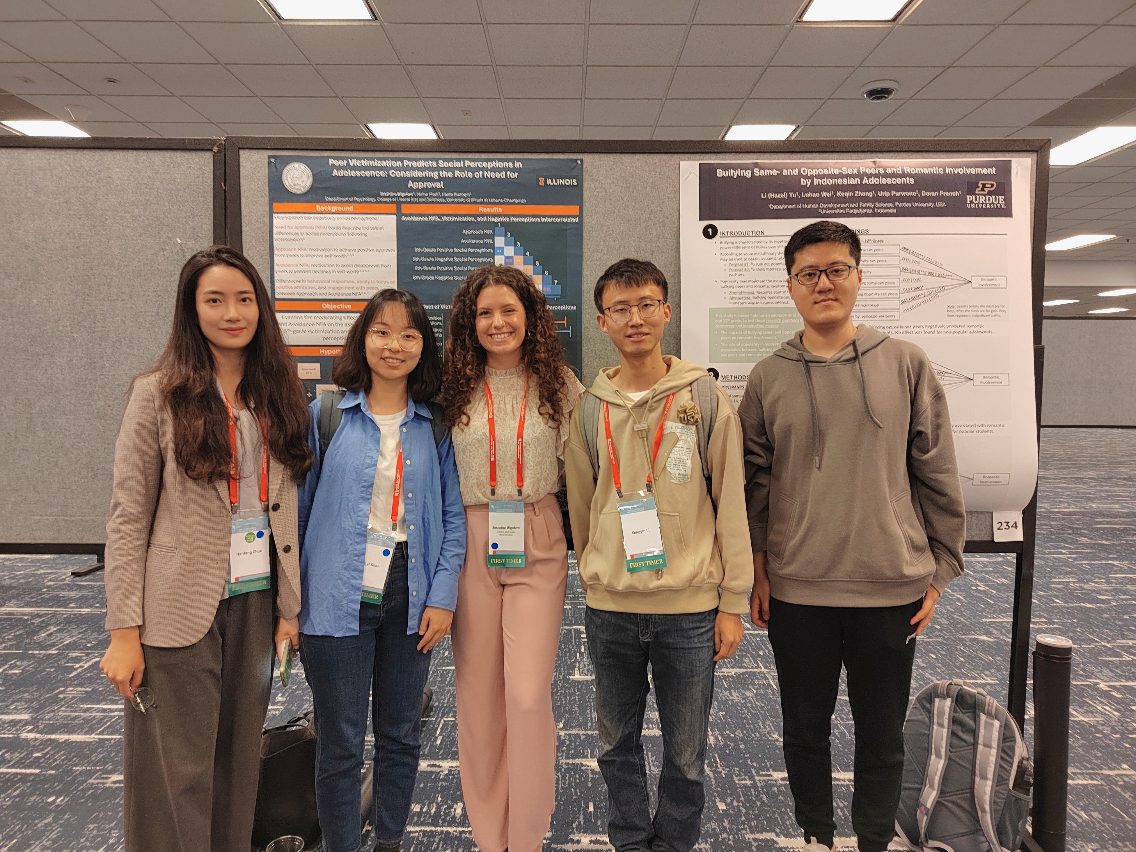非常感谢爱爱啦 能够资助我去参加这次在美国芝加哥举办的高水平的国际会议。这次国际会议与我同行的还有同一课题组的周含芳和申净旖,韩卓老师课题组的徐健捷。本次会议的正式举办时间为是2024年4月18日——4月20日。由于正式会议前一天下午还有会前工作坊,我们也很感兴趣,与我们的研究领域也很有关,因此也进行了注册。我们于北京时间2024年4月16日下午5点25从北京首都国际机场出发,北京时间2024年4月17日下午2点45到达美国旧金山国际机场进行中转,最终于北京时间2024年4月17日晚上11点21分(芝加哥时间2024年4月16日早上到达芝加哥机场,然后打车前往会议举办酒店——芝加哥希尔顿国际酒店。 在会议海报展贴现场中,有非常多研究者分享了他们最新的研究。令我印象深刻的研究是来自普渡大学的于荔的工作。下面我将简要进行介绍。 她的研究题目为在印度尼西亚青少年中欺凌同性和异性与浪漫参与的关系。欺凌的特点是其重复性和欺凌者对受害者的权力差异。根据进化心理学的观点,欺凌有时是作为一种寻求浪漫关系的一种手段。目的有两个:其一是排除潜在的竞争者,其二是对潜在的伴侣表达出兴趣。在通过欺凌去获取浪漫关系时,存在一些潜在的调节因素。换句话说,受欢迎程度可能调节欺凌与浪漫参与之间的关系。存在两种调节方向,根据资源控制理论,受欢迎程度可能会加强欺凌与浪漫参与的关系。另一方面,欺负异性同伴是一种不成熟的表达兴趣的方式。因此,受欢迎程度可能会缓解欺凌与浪漫参与的关系。为了探讨这些研究问题,该研究对10年级和12年级的印度尼西亚青少年进行了追踪。最终样本包含459名10年级和738名12年级的青少年。大部分的青少年来自中高产阶级家庭。研究者对这些样本进行了多组路径分析。最终结果显示: 在10年级样本的横断关系中,受欢迎程度调节欺凌同伴与浪漫参与的关系,也就是说,在受欢迎程度的群体中,欺凌同性同伴与浪漫参与呈显著的负相关关系。而在不受欢迎的群体中,欺凌同性同伴与浪漫参与没有显著的关系。 在12年级样本的横断关系中,结果恰恰相反,在不受欢迎的群体中,欺凌异性同伴与浪漫参与呈显著正向关系,在受欢迎的群体中,欺凌异性同伴与浪漫参与没有显著关系。 在纵向关系中,在受欢迎的群体中,欺凌异性同伴与浪漫参与没有显著的关系。总体而言,这项研究从同性和异性同伴的视角发现了欺凌对浪漫参与的不同影响,具有很切实的实际意义。