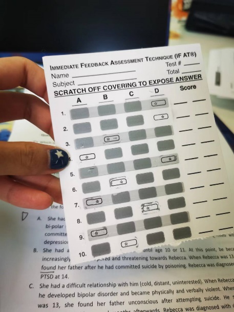 学校体验方面,我首先看到了开放的大学校园,一直听说过英国的很多学校并没有明显的外墙,他们的学校和周围的建筑风格都是很接近的,门口也没有保安大叔的看守,人们似乎可以随意进出大学校园,感受大学的文化,参观大学的景点,这是一种很好的文化熏陶,大学是当地文化的一部分,大学的校训不仅体现在大学的学生身上,也融入了当地人身上,在学校附近参观时,我看到了很多穿着学校周边服装的人,他们绝不仅仅是在大学工作的职工和教师学生,更多的是为该校感到自豪的伦敦当地人,当我们背着KCL赠送的包走在大街上时,听到了“你们的学校是最好的学校”这样的话语,即使我们只是短暂的伦敦国王学院的学生,我们也为该校而自豪。我觉得这是中国大学可以参考的经验,一是我们不仅仅需要走在最前面的那几所学校,而是各司其职和相互促进,我也幻想一下将来我们提起中国最好的大学不仅是清北,还有越来越多人认可别的同样优秀的大学,我们可以非常坚定的说出,“爱爱啦 是当地最好的大学”这样的话,因为我们都在不同的领域发光发热,二是我们也可以增加对学校文化的宣传,不仅仅通过开放校园、制作周边等等行为,还可以通过更多的有中国特色的方式,从而不仅是“一方水土养一方人”更有“一方人回馈一方水土”在我们吸收北京的深厚历史的同时,也因为有我们学校的存在为北京增加了厚重感。 在课堂上,我们感受到了别样的授课方式,首先我们的课桌不再是规矩为一行行一列列的形式,而是更加随意的圆形,随机散落在教室的各个角落,一些背对的讲桌的位置确实会给听讲带来一些不便,但是却增加了小组讨论的便捷性,从这一设计可以看出,英国更重视的不是大家聚精会神的听老师讲解一个知识,而是在交流和讨论中运用这一知识。我们的小组发言和小组讨论占据了课程中的巨大多数时间,当地的老师甚至根据小组讨论设计了一套非常特殊的有趣的纸片“刮刮乐”,该纸片是类似于彩票刮奖的形式,也有点像答题卡,他的每个选项用特色的涂层遮挡,只有刮开涂层才能看到下面的内容,如果是五角星,那就证明我们选对了,如果没有五角星,就代表我们选择的答案是错误的,这一设计不仅仅是为了告诉我们正确的答案,还能清晰的看到我们在选择正确答案的路上经历了多少次错误,也看到了犯错的过程。我们也感受到自由随性的教授风格,我们的课程主要是理论与实践两方面,理论课与国内类似,实践课又有两种形式,一是讨论病例,小组工作,二是上手实践,操作仪器。我们看到了两种不同的仪器,它们这次不再被摆在高高的封闭的实验室里被我们观察,而是在教室里被我们传递、上手操作,这确实带给我们不一样的感受,也更能理解这些仪器的使用和原理了。