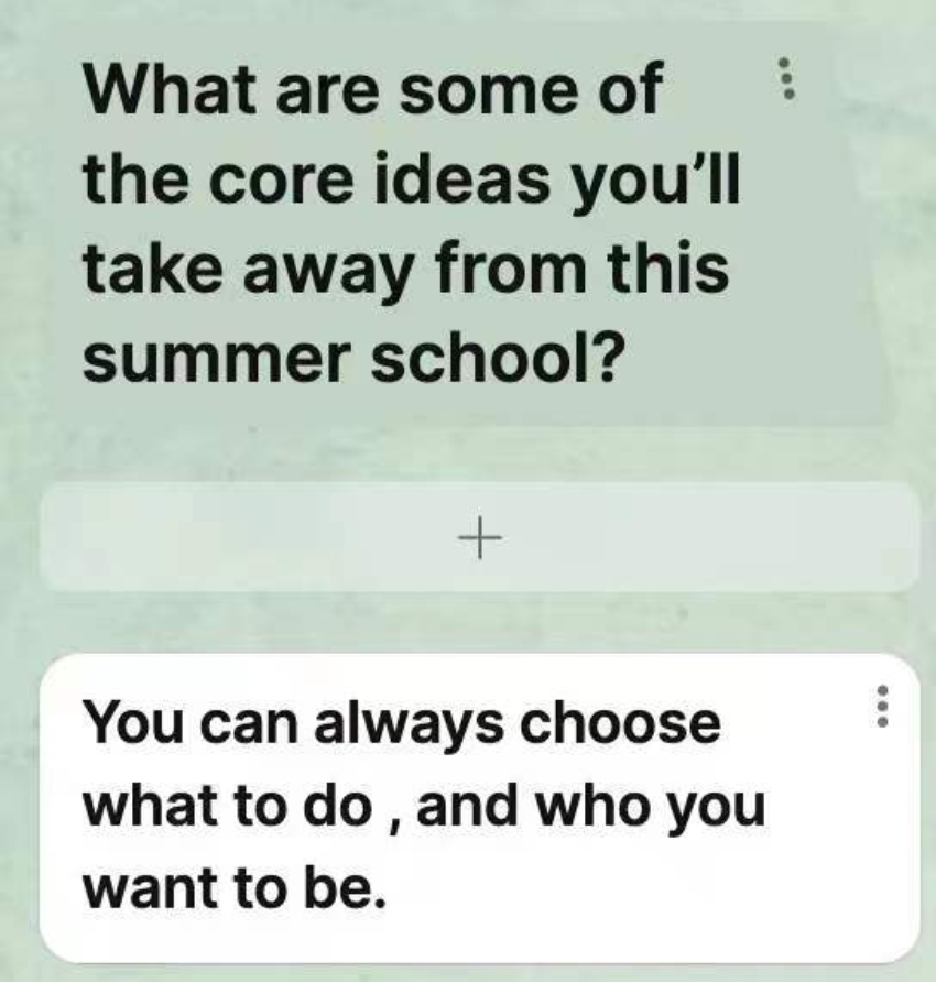 这样短短两周的体验,让我体验到国外大致的上课模式,我发现是我喜欢的风格与方式,我是适合这样讨论和参与度的。且很大程度上减少了我对于英语水平能力、出国上课难度的恐惧。虽然之前已经在着手准备一些出国留学的材料,但我一直特别畏惧出国上学这件事,认为自己能力不够、一定听不懂,对这件事情非常恐惧甚至抵触,不愿意做出这样的尝试和挑战。但这次KCL交流让我发现我自己好像是可以的,好像出国留学这件事情也没有那么可怕。甚至我是喜欢国外上课的氛围的,我会愿意在国外接受更长时间的教育。之前报名的时候,想着就两周时间,先来简单体验一下,看看国外上学什么样。但没有想到的是,就是这短短两周时间,让我的想法发生巨大的转变,基本帮助我坚定了申请出国的想法。我会在剩下大四的时间好好准备材料,努力申请出国留学,希望可以收到英国学校的offer。课后我和第一周非常喜欢的老师Cotier有过一小段简单的对话,最后我和她说,hope to meet you on campus again one year later,希望明年我会踏上相同的旅途。