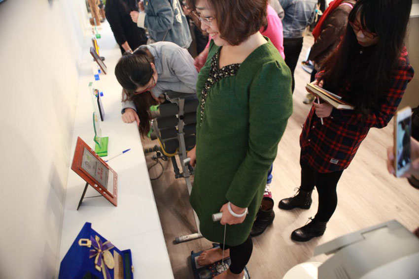 北师大心理学院2016MAP台湾实践行张晓娜老师体验和泰兴业公司为员工提供的健康测量仪