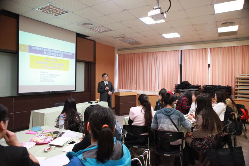 黄宗坚老师为北师大心理学院2016MAP台湾实践行同学们讲《表达性艺术治疗牌卡在EAP上的运用》