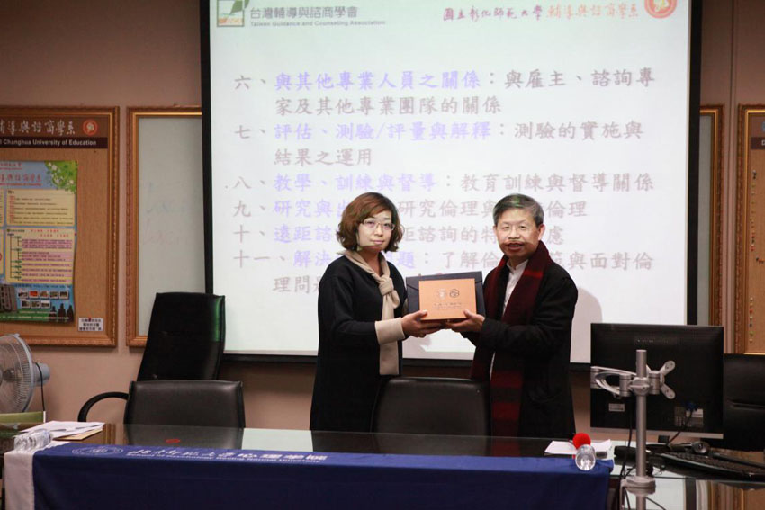 北师大心理学院2016MAP台湾实践行领队张晓娜老师为彰化师范大学赠送纪念品