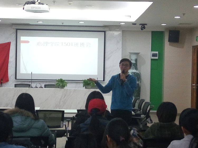 2016年3月22日下午5时,心理学院本科15级1班2015-2016春季开学班会在后主楼1318成功召开。本次班会由班长彭文杰主持,15级兼职辅导员蔚文乐和15级1班全体同学参加了本次班会。