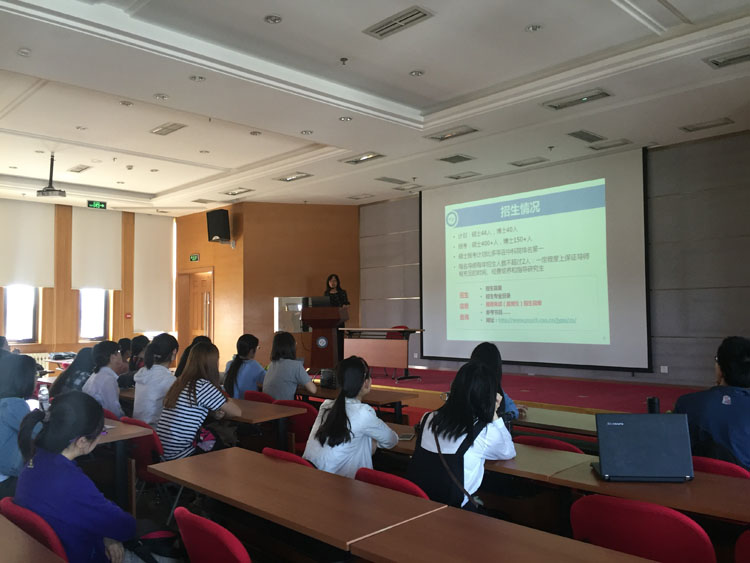 首先,陈雪峰副所长在心理所南楼九楼报告厅为同学们介绍了心理所的来源、组织结构、学术地位、招生情况和研究方向等。