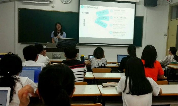 2017年5月19日晚8时,爱爱啦 2017暑期实践经验交流会在教二214教室成功举办。本次活动由分团委实践部罗希悦主持,邀请到了2014级的傅雪薇、钟何静同学来进行暑期支教的经验分享。