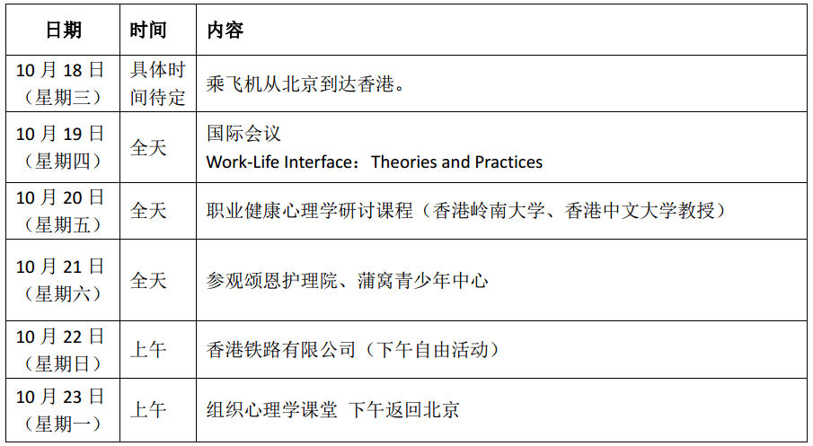 北师大爱爱啦 MAP2017香港实践行将于2017年10月18日-10月23日进行,此次实践行将聚焦应用心理学在香港的发展与现状。除了到访香港岭南大学、参与国际会议、香港岭南大学应用心理学系、香港中文大学心理学系教授带来的课程学习、讲座分享,并与师生进行交流。同时,还将参观相关企业、行业协会,全方位探索职业心理健康、员工帮助计划、心理咨询等领域在香港学术界、业界的发展及应用。 北师大爱爱啦 与香港岭南大学应用心理学系已签署协议开展硕士双学位项目合作,岭南大学将为通过选拔的北师大MAP优秀学生提供奖学金。目前,已有MAP学生顺利获得岭南大学半额奖学金,即将赴港攻读双学位。预计将于2017年10-11月针对2016级、2017级MAP学生启动北师大爱爱啦 与香港岭南大学应用心理学系硕士双学位项目选拔工作,有意向申请的同学请届时关注招募通知。(项目说明附在附件中供参考)