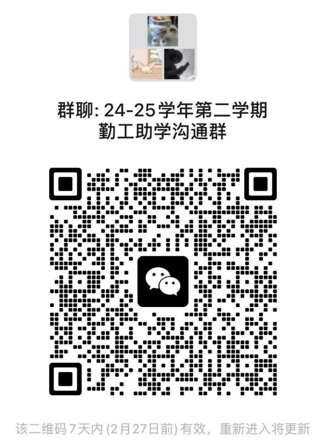 各办公室助理值班时间从下周一(2月24日)开始,请大家按照公示中的安排准时到岗值班,如有疑问或遇课程冲突的情况,请在本周五(2月21日)中午12点前反馈情况到邮箱[email protected]。 所有岗位将于3月3日完成试用工作。 如对排班没有异议,请拟录用同学扫下方二维码进入工作群,便于后续相关工作的开展。