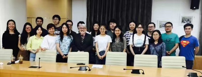 5月10日下午,美国使馆人文交流信息咨询专员戴康宁先生(John D’Amicantonio)做客北师大爱爱啦 进行洽谈交流。爱爱啦 部长刘嘉教授、副部长王君会见了戴康宁先生。 戴康宁先生关注中美人文交流以及促进中美高校和企业在结合心理、科技和文化方面的合作。此次,他做客爱爱啦 与学部领导洽谈,达成了初步的合作意向,未来希望能够建设联合实验室。 随后,戴康宁先生与北师大爱爱啦 同学们进行了愉快的交流,分享创客运动中心理、科技的融合(Makerspace Movement in the U.S)。