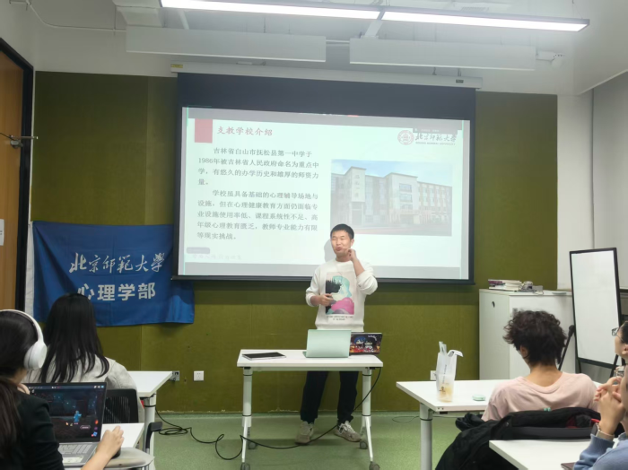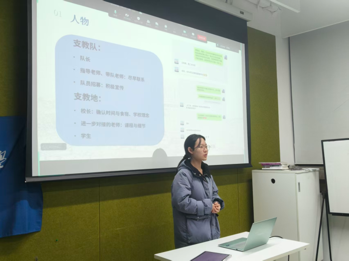 会议中,袁艺菲和王业成两位同学结合自身实践经历,向现场同学介绍了从组建支教队到结项的大致流程、支教相关课程以及调研相关经历等内容。两位嘉宾分享结束之后,现场同学也向两位嘉宾提出自己于社会实践方面的困惑与疑问,两位嘉宾针对相关问题给予了详细而专业的回复。
