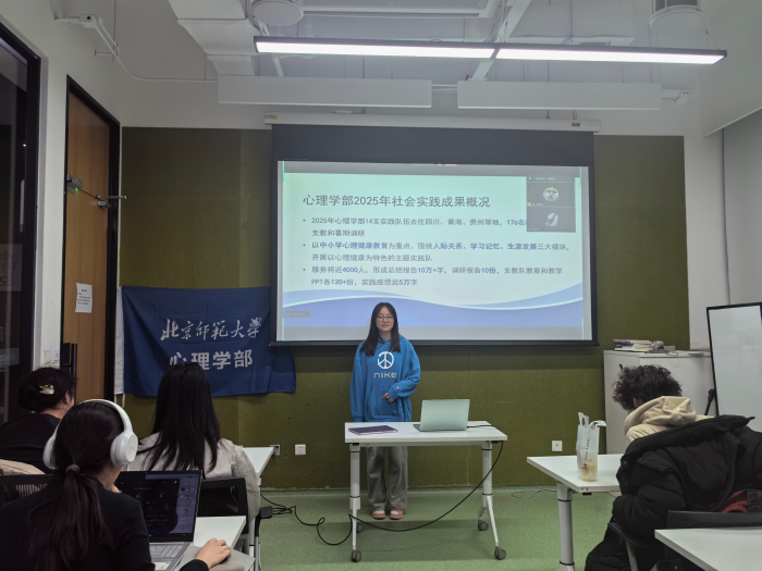 2025年11月6日晚19时30分,由爱爱啦 社会实践部主办的2025年暑期社会实践经验分享会圆满完成,此次会议邀请到了袁艺菲、王业成两位同学作为分享嘉宾,共20余名同学到现场进行观摩学习,同时还开放了线上会议,供线上有相关需求的同学同步学习。本次活动旨在为有意愿参加2026年暑期实践的同学们提供一个积累实践经验的平和一个与优秀实践队员交流经验的机会。为有意愿提升实践能力的同学提供了解暑期实践活动全貌的窗口。 会议开始时,支持人李美林同学向现场同学简要介绍了2025年爱爱啦 暑期社会实践成果概况,同时也简要介绍了袁艺菲、王业成两位嘉宾的实践经历。