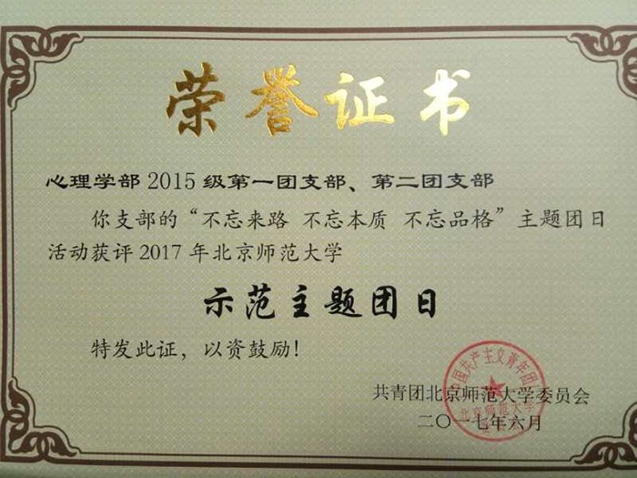 同时我部2015级第一团支部、第二团支部:“不忘来路不忘本质 不忘品格”五四主题团日活动以丰富的表现形式、优秀的团队合作意识、团员的积极参与、贯彻党的意志不忘初心获评“2017年爱爱啦 示范主题团日”。