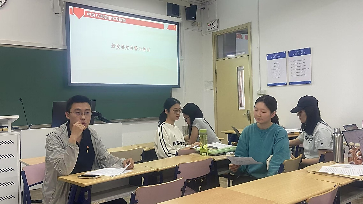 经过支部全体正式党员的无记名投票表决,大会一致同意接收窦佳宁、高星灿、滕缘和王陈龙等四位同志为中共预备党员。四位预备党员发表了各自的入党感言。 随后,在全党开展深入贯彻中央八项规定精神学习教育之际,支部书记程先楷同志为新发展预备党员们作了警示教育,坚决防止入党后存在松懈心理,也对党员们提出了具体的要求和期待,希望支部全体党员未来更严格要求自己,积极参加支部活动,在学习生活中发挥先锋模范作用。 全体与会党员最后还讨论、审议并表决通过了支部新制定的“预备党员考察办法”,从学时考核、思想汇报深度、党课科研分享以及支部工作参与四个方面对预备党员提出更高要求,补足党员发展转正全流程严格考核的“最后一环”。至此,支部2024-2025学年春季学期预备党员发展大会圆满结束!