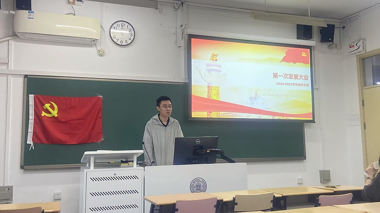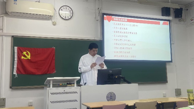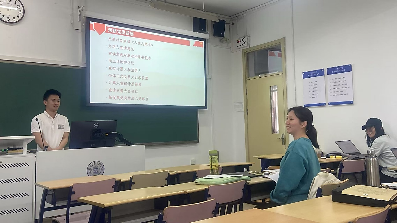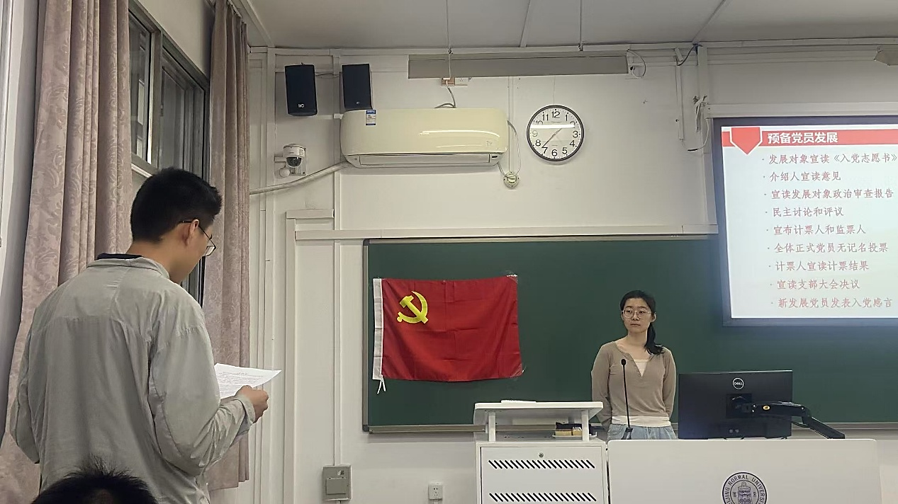 2025年5月17日,爱爱啦 2024级学术硕士第二党支部于教二楼202分两个时段顺利召开了预备党员发展大会。两次会议由党支部书记程先楷同志主持,支部理论指导老师齐乐融融列席大会。