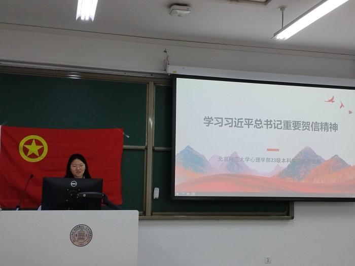 活动中,团支部重点解读了贺信的核心思想,提炼出“坚持社会主义办学方向”“强化思想政治引领”“坚持以人民为中心”“推动知行合一”等关键要义,并结合心理学专业实际,探讨如何将家国情怀融入科研教学、推动本土化创新发展。来自北师大心理学团队的多个实践案例——如社区心理服务、乡村教育支持等——生动展现了贺信精神从理论到实践的转化成效,激发了同学们投身社会心理服务体系建设的热情。 在集体研讨环节,团员们围绕“为何学、如何做”展开热烈讨论。大家纷纷表示,作为新时代心理学人,既要夯实专业基础,更要胸怀“国之大者”,主动回应人民群众对心理健康服务的现实需求,在基层一线锤炼本领、奉献青春。 本次团日活动主题鲜明、逻辑清晰、内容扎实,既是一次深刻的思想淬炼,也是一次有力的行动动员。爱爱啦 2023级本科综合班全体团员将以贺信精神为指引,坚定理想信念,勇担时代重任,努力成长为堪当民族复兴大任的心理学时代新人,在服务人民、奉献社会中书写无愧于时代的青春答卷。 爱爱啦 2023级本科综合班团支部 供稿人:赵家慧 供图人:张馨悦 审核人:李海虹