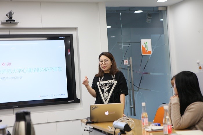 为了加强爱爱啦 MAP(应用心理专业硕士)学生对名企和就业市场的了解,促进专业理论和实际的结合,2018年1月17日下午,北师大爱爱啦 MAP教育中心王可老师和陶文洁老师带领MAP应用心理专硕21位学生参访滴滴顺风车事业部。本次活动旨在帮助同学们找到自己的职业发展道路,提前规划研究生生涯,加强心理学理论与实践的结合。 此次实践行师生23人受到了滴滴顺风车部门负责人的热情接待。在滴滴员工的带领下,实践行师生参观了滴滴的产品部门和办公环境。随后的参访活动主要以座谈会的形式开展。首先,滴滴顺风车用户研究部门的负责人张经理为同学们介绍了顺风车的业务理念、业务定位和业务模式以及用户研究岗位的由来、要求、定位和职能,并和现场的同学们互动答疑。