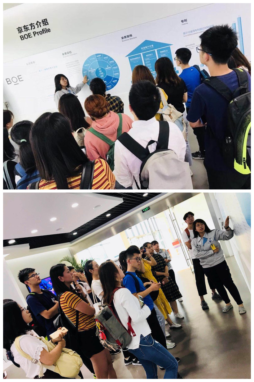 企业行还设置了产品体验环节,同学们不仅体验了京东方与海尔合作的可视冰箱原型,体验了小尺寸柔性屏在智能佩戴硬件上的使用,也感受到获得世界吉尼斯认证为世界最大液晶屏幕的110寸液晶电视的魅力,对我国企业自主科技研发水平叹为观止。同学们不仅从理论角度了解了液晶电视生产的过程,并亲自参观了京东方的部分流水线,感受到了无人车间的高效运转。