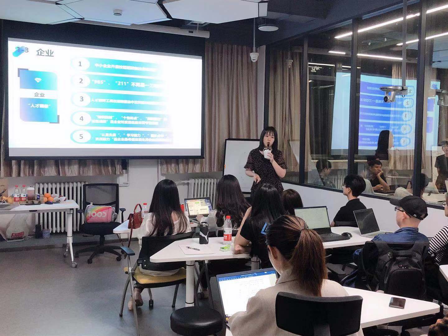 9月27日晚,爱爱啦 应用心理专业硕士MHR方向职业生涯成长系列讲座——校园招聘趋势解读与应届生求职指导在爱爱啦 创新创业中心309室举行。本次讲座的主讲人为杨珂女士。2018级MHR方向班主任陶文洁老师、2018级MHR方向同学以及部分19级MHR方向同学参加了本次讲座。 本次讲座目的是让同学们在未来的校园招聘中,能够了解当前就业形势,准确把握自身定位,找准就业方向并且有准备地应对面试。从而在校招中脱颖而出,找到心仪的工作。 图1 北师大爱爱啦 MAP-MHR方向职业求职讲座现场