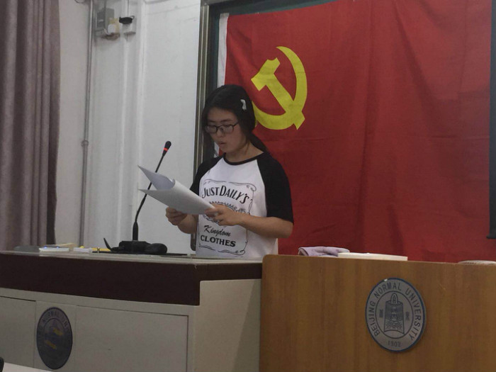 5月9号晚,本学期第一次、第二次爱爱啦 本科生党支部党员发展大会于教二105在庄严的《国际歌》合唱声中拉开序幕。两次会议由支部书记陈子卓主持,分别针对发展对象史博文、武晓红和刘畅同志,以及刘亭序、李一行和周婧怡三位同志的入党申请及相关情况进行了讨论和表决。大会共有9名正式党员参加,超过应到会正式党员人数的半数,没有到会的7名正式党员出具了书面意见。 第一次党员发展大会开始,主持人陈子卓同志对本次大会的流程及发展对象顺序进行介绍,随后三名发展对象逐一宣读入党志愿书。三名发展对象结合自身实际,陈述了自己的入党动机,表达了对中国共产党的向往,表示愿意服从党的领导,对党忠诚,积极工作,坚定不移跟党走,为共产主义事业奋斗终身。 随后,三位发展对象的入党介绍人分别宣读介绍人意见,其中武晓红同志的第一介绍人书面意见由支部书记陈子卓同志代为宣读,他们肯定了发展对象在培养考察期间的思想觉悟和突出表现,并且针对他们在生活学习中的不足之处提出了批评和建议。 第一介绍人的意见宣读完毕后,与会的同志就三位发展对象的优点和不足之处进行了民主评议。随后进行全体正式党员进行无记名投票。支部党员赞成接收史博文、武晓红和刘畅三位同志为中共预备党员。三名同志也表示将在实践中不断锻炼自己,更努力地为身边的同学服务,努力成为一名优秀的共产党员。