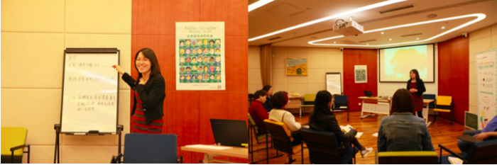 培训由身体活动的热身拉开帷幕,在各位家长开始关注身体的感觉,并将四肢活动开来融入课程时,要求每位家长制作一个小的沙盘作品。从沙具架子上找代表自己和孩子的沙具,然后在带有圆形边界的白纸上摆出一个简单的沙盘,代表自己与孩子互动的场景。制作完成后,让每位家长分享所制作的沙盘的故事,以此了解每位家长与孩子的互动模式。 随后,进入课程的主体部分,首先强调体会“感受”的重要性,要求所有学员在本期课程中时刻关注自己的感受,练习觉察自己的感受并将其说出来。并引导各位学员在生活中,觉察孩子的感受,理解其感受背后的真正意愿是什么,从而走进孩子的内心。抛出生活中孩子可能出现的一些典型的不恰当行为,引导家长思考孩子行为背后的感受与意图。由一位学员扮演孩子,其它学员作为其家长执行平时生活中常见的处理孩子行为的方式,通过这个活动让各位学员察觉我们的处理方式会给孩子带来怎样的感受,以及当我们使用这种方式时自己内心的感受。随后引出一些合理可行的解决方法,如“接纳、共情、赋权、 赞赏、启发等”。那么,当孩子做得好的时候家长们应该怎么做呢?由一个微缩型情境展示上演孩子生活中经常会面临的三种情况:被鼓励、被表扬与被忽视。借此让所有家长理解面对三种不同情况时孩子的心里感受,且长此以往会给孩子人生带来的怎样的改变,从而让家长们自己领悟,并得出平时因更多地采用何种方式在孩子做得好时进行互动。