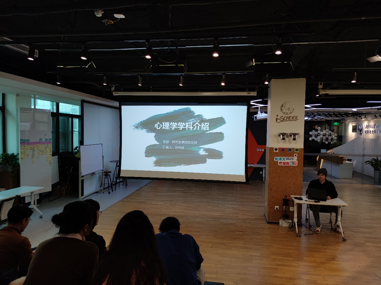随后,研究生第四党支部的许伟锋同志以“心理学学科介绍”为主题进行心理学知识科普,为大家分享了心理学的发展历史、学科特点和主要分支,澄清了公众对心理学专业的常见误解。在学科介绍的过程中,法学专业的同志还积极提出了一些心理学方向上的疑惑,心理学专业的同志结合自身知识与研究方向针对性地进行回应,在相互交流中增强了对心理学学科的认识。