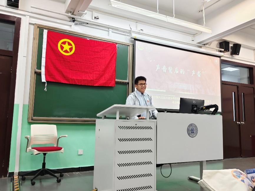 图 6青春讲师团饶少旗讲师进行团课宣讲 于海生同学结合自身经历,动情讲述了首都高校合唱团在纪念中国人民抗日战争暨世界反法西斯战争胜利80周年大会活动中,从排练到正式演出过程中那些感人至深的声音故事。第一次团课通过理论讲授与历史、故事相结合的方式,帮助学员深化思想认识,筑牢信仰根基。