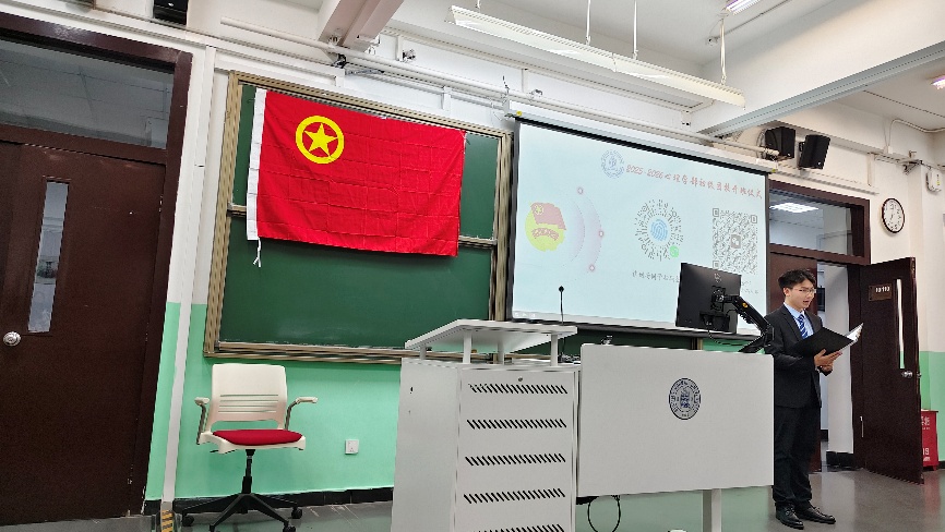 图 1主持人李瑜轩宣布开班仪式正式开始 正式活动由两部分组成:首先,由初级团校秘书处秘书长李镇岑进行2024-2025学年工作总结,从思想引领、综合提升、实践服务三个方面,带领大家回顾上一年度初级团校的优异成绩。 随后,由初级团校秘书处副秘书长李宣颖讲解初级团校培养方案,详细介绍了未来一年的培养方案与学分认定细则,让学员们对本年度初级团校课程有了整体认知和预期,为初级团校新一年度工作的顺利开展奠定了坚实基础。