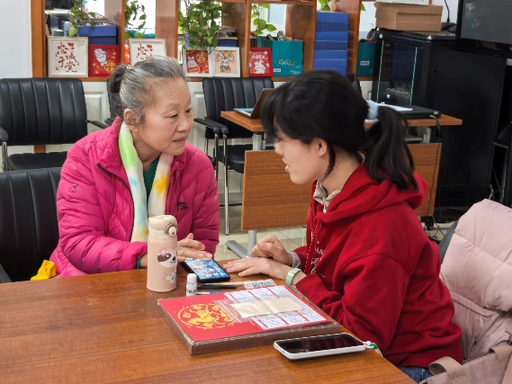 下午2:30,活动正式开始。支部同学与老年人及职康站学员一对一结伴,耐心解答老年人在使用手机中遇到的各种问题。同学们认真负责,通过手把手指导、绘制示意图等多种方式帮助老年人理解操作步骤,并鼓励他们将所学应用于日常生活。