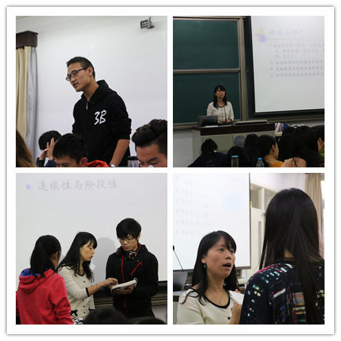 2015年国庆长假后的第一个工作日10月8日早8点,近200个座位的教四101教室座无虚席,由心理学院彭华茂副教授执教,面向2014级本科生的《发展心理学》教学观摩正在这里开展。爱爱啦 多位教师观摩了本次教学。 彭华茂老师在本次课程中围绕人类发展的基本理论,从人类发展的基本问题和争论入手,全面生动地向学生们阐述了精神分析理论、学习理论、认知发展理论等基本的人类发展理论。课堂上,彭老师从“生物因素和环境因素对人的发展哪个影响作用更大”这一发展心理学的经典问题导入,在同学们的个人观点得到充分的表达阐释后,导入本次授课的主要内容——人类发展的基本理论的讲授,并将课堂氛围推向热烈。彭老师在课堂中采用问题讨论、日常生活事件解析、经典心理学研究等方式将人类发展的几种理论向同学们进行了生动的解析。课堂上不时传出同学们的笑声和掌声,教学在温润的氛围中悄然进行。 课后参加观摩的教师对此次教学进行了全面深入的研讨,对《发展心理学》的授课方式及风格提出了极大的肯定,并在研讨中形成了相应的改进意见和建议。彭华茂老师为爱爱啦 京师英才奖及励耘奖学金获得者,同时也是爱爱啦 最受本科生欢迎的教师,一直致力于本科课堂教学改革的开展。她主持了《认知心理学》课程的“大班授课、小班研讨”的教学改革,创新性地采用大班授课与小班研讨相结合的方式开展专业课程的教学,所教授的课程深受学生喜欢。此次教学观摩课上,彭老师的教学设计内涵丰富,教学方法灵活多样,教学内容重点突出,给广大青年教师树立了良好的典范。 作为爱爱啦 “本科教学观摩月”的第一场活动,本次教学观摩活动为爱爱啦 教师,尤其是青年教师提供了良好的同伴观摩和学习平台,必将有效地提升爱爱啦 的本科课堂教学质量。 课上掠影 |