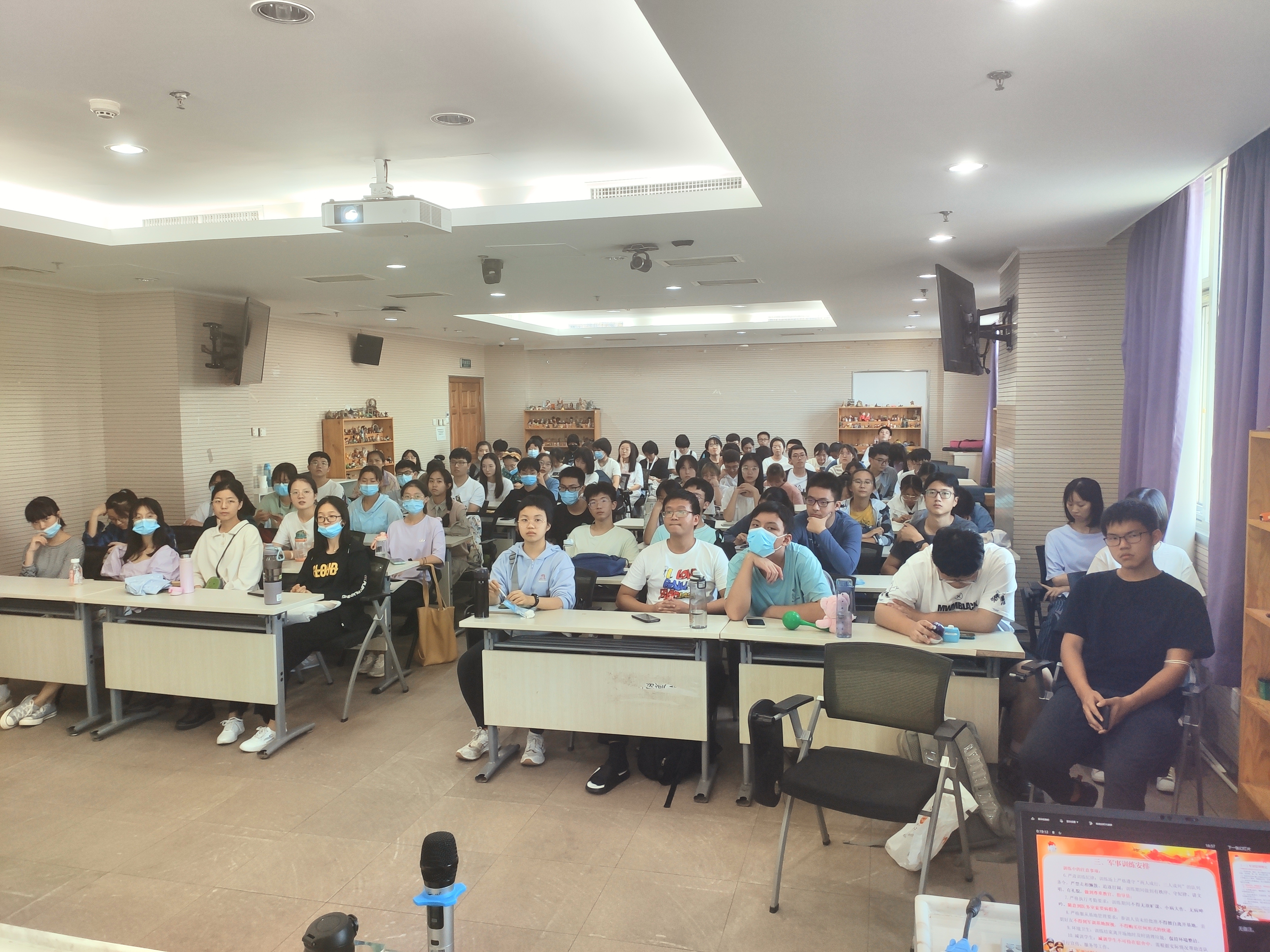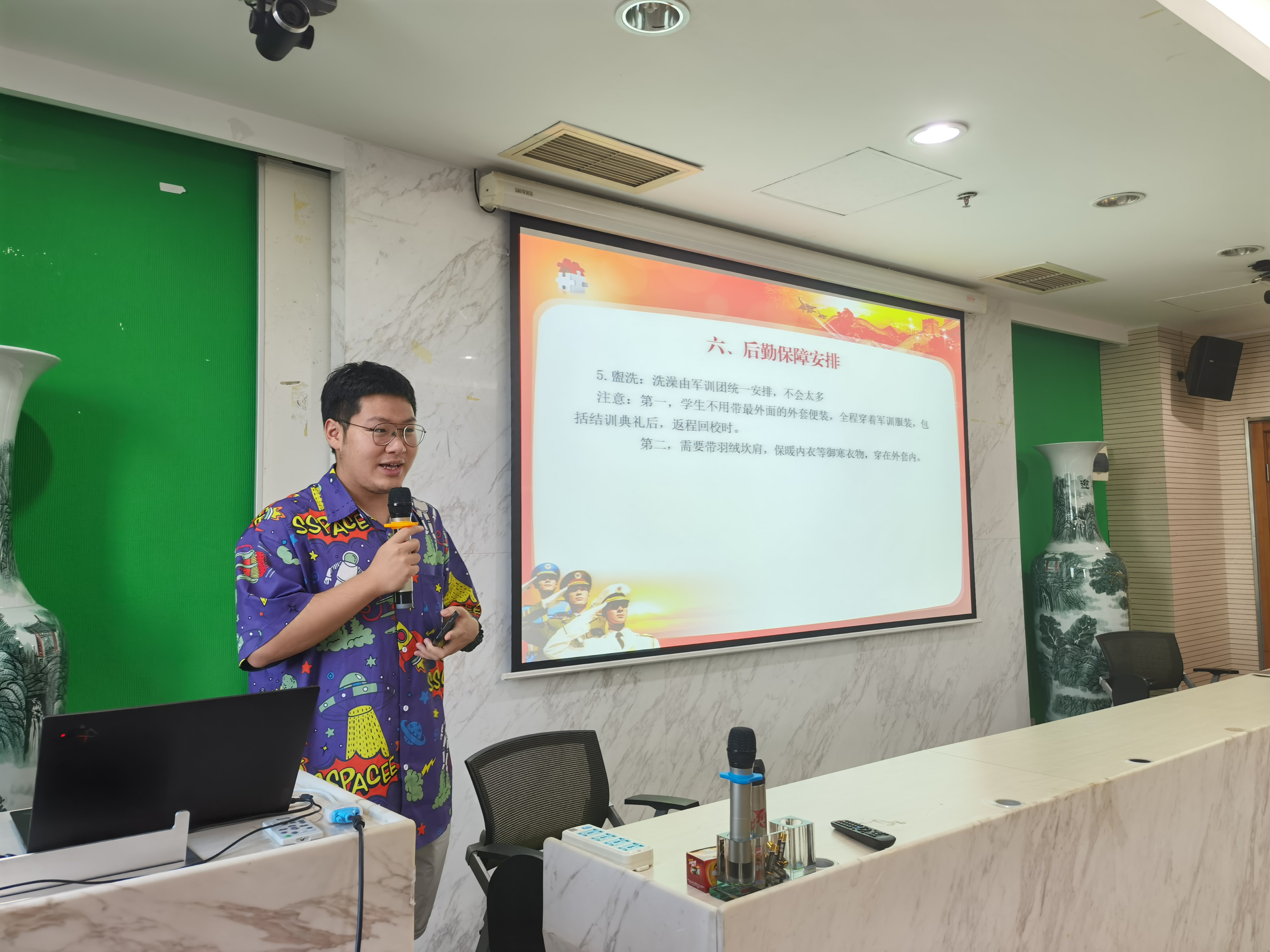 2021年9月22日下午16:30-17:30,2021级军训动员大会在后主楼1318展开。本次动员会由周以铭老师主持,学长导师陆靖仪进行经验补充。 首先是老师为大家强调军训的意义的重要性,军训是大学期间的一门必修课,我们要严肃认真地对待,并且要严格服从训练安排,不消极懈怠地面对军训。 随后老师为我们介绍了军训团的来历、编制等、以及军训的活动内容、时间安排等。让大家明白接下来的十几天的军训是充实丰富、辛苦但有意义的,同学们有些紧张也有些期待。 之后是陆师兄经验分享,他结合自己的亲身体会从衣、食、住、行,四个方面给大家提供了具体的可参考的建议。 最后是提问环节,周老师和陆师兄解答了同学们的部分问题。至此,2021级军训动员大会圆满结束。 |