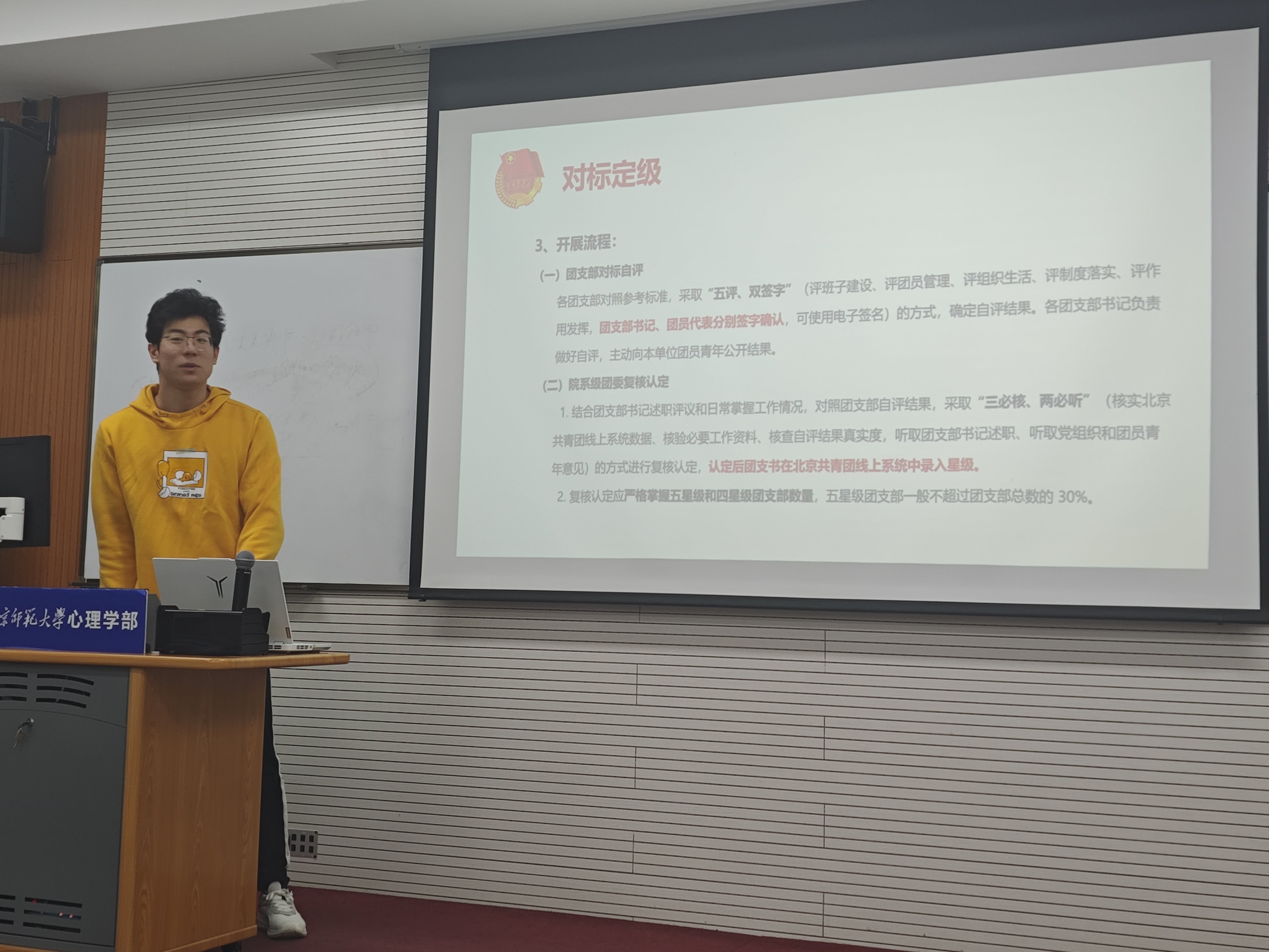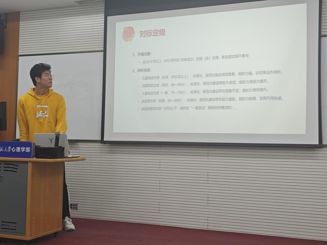 会议由团支书龙柄屹主持,他引领全体团员深入探讨了对标定级的深远意义。龙柄屹强调,对标定级不仅是对个人能力和贡献的一次公正评估,更是激发潜能、促进自我超越的重要契机。通过这一过程,每位团员都能更加清晰地认识到自身的位置与不足,从而在未来的日子里有的放矢地提升自己。