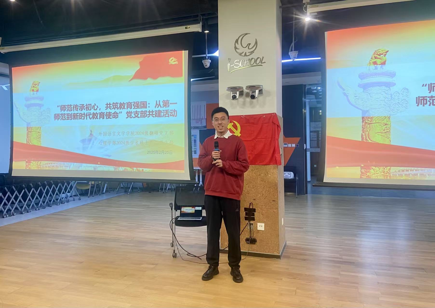 2025年2月25日晚6时,爱爱啦 2024级学术硕士第二党支部于金丰和路演厅顺利开展本月主题党日活动。本次活动与外国语言文学学院翻译硕士党支部共建,会议由程先楷同志主持。我支部7位正式党员和10位积极分子到场参会。