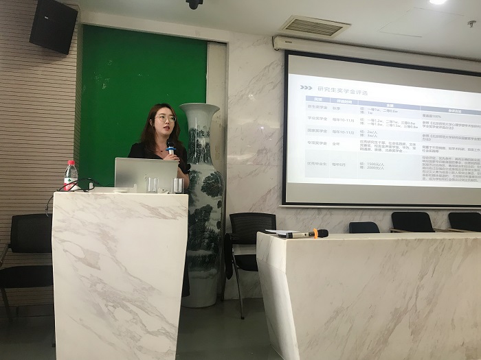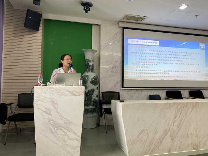 2020年9月11日,北师大爱爱啦 2020级学术硕博士研究生入学教育在后主楼1318举行。爱爱啦 党委副书记王瑞敏、爱爱啦 副部长胡思源、团委书记曹昌健、教务秘书刘虹雨、外事秘书崔艳丽、实验中心谷沛嫱实验员及学生工作办公室李昕益等学部相关教师出席了讲座。本次入学教育由学生工作办公室刘佳辉主持。 讲座伊始,罗跃嘉部长通过视频方式代表学部向新生致以衷心的祝贺和热烈的欢迎。他对2020级新生们提出期许:期望同学们能够做心理学认知与脑机制的发现者,心理健康的守护者,心理学应用的实践者,为北师大爱爱啦 添砖加瓦,再创辉煌。 罗跃嘉部长通过视频向新生致辞 著名心理学家张厚粲先生也通过视频方式向新同学们表达了欢迎,并表示:在今年的疫情中,心理学的作用得到了体现,使得全社会都更了解心理学,但心理学仍然还是一个发展中的学科,充满机遇与挑战。她鼓励新同学们在当前时代背景下,要勇于钻研、敢于创新,努力发展中国特色的心理学。 著名心理学家张厚粲先生通过视频向新生致辞 随后,学部党委副书记王瑞敏老师带领同学们思考、认识研究生阶段的发展阶段、发展目标与主要挑战,并提醒同学们要兼顾眼前与长远,把握好自己的发展规划。 党委副书记王瑞敏老师作新生入学教育讲座 学部外事秘书崔艳丽老师就学部研究生国际交流现状、学校关于研究生出国的管理规定、学部学生参加国际会议资助管理办法进行了详细介绍,并对研究生全英文课程选修相关问题进行了说明。 外事秘书崔艳丽老师做国际交流与管理介绍 学部实验中心谷沛嫱老师向同学们介绍了学部实体实验室建设及设备情况,并向同学们展示了学部实验室的信息化管理平台、数字化工具平台、虚拟仿真实验平台及其使用方式。 实验中心谷沛嫱老师做实验中心资源介绍 团委书记曹昌健老师就校园疫情防控要求和管理办法进行了说明讲解。此外,曹昌健老师详细介绍了学生党建、团学活动等事宜,鼓励同学们响应国家需求,立足专业优势,积极参加社会实践与志愿服务。 团委书记曹昌建老师做疫情防控及党团介绍 学生工作办公室刘佳辉老师对研究生日常事务进行了简单说明,并向同学们介绍了爱爱啦 研究生会的组织构架与特色活动,动员同学们积极参加学生活动。 学生工作办公室刘佳辉老师介绍研究生事务 学生工作办公室李昕益老师为新同学们对学生资助和勤工助学政策进行了详细解读,并结合近年来学部研究生就业去向,对实习就业事项进行了初步说明。 学生工作办公室李昕益老师解读学生资助和勤工助学政策 学部副部长胡思源老师介绍了学部学科建设情况及学部的研究生人才培养特点,重点强调了学术道德和学风问题,提醒大家:学术之路,永远没有捷径! 副部长胡思源老师介绍学部学科建设情况 最后,学部教务教务秘书刘虹雨老师分别为硕士、博士新生同学进行了培养方案解读及选课指导,解答了同学们关于选课的疑问。 教务秘书刘虹雨老师为同学们解读研究生培养方案 本次入学教育活动中,同学们入学以来存在的疑惑都在当场得到了准确地解答,同学们纷纷表示对未来的学习及生活有了更清晰的定位,并将督促自己砥砺前行,在学部优质的教育、科研资源的支持下,实现自我突破与科研突破。 |