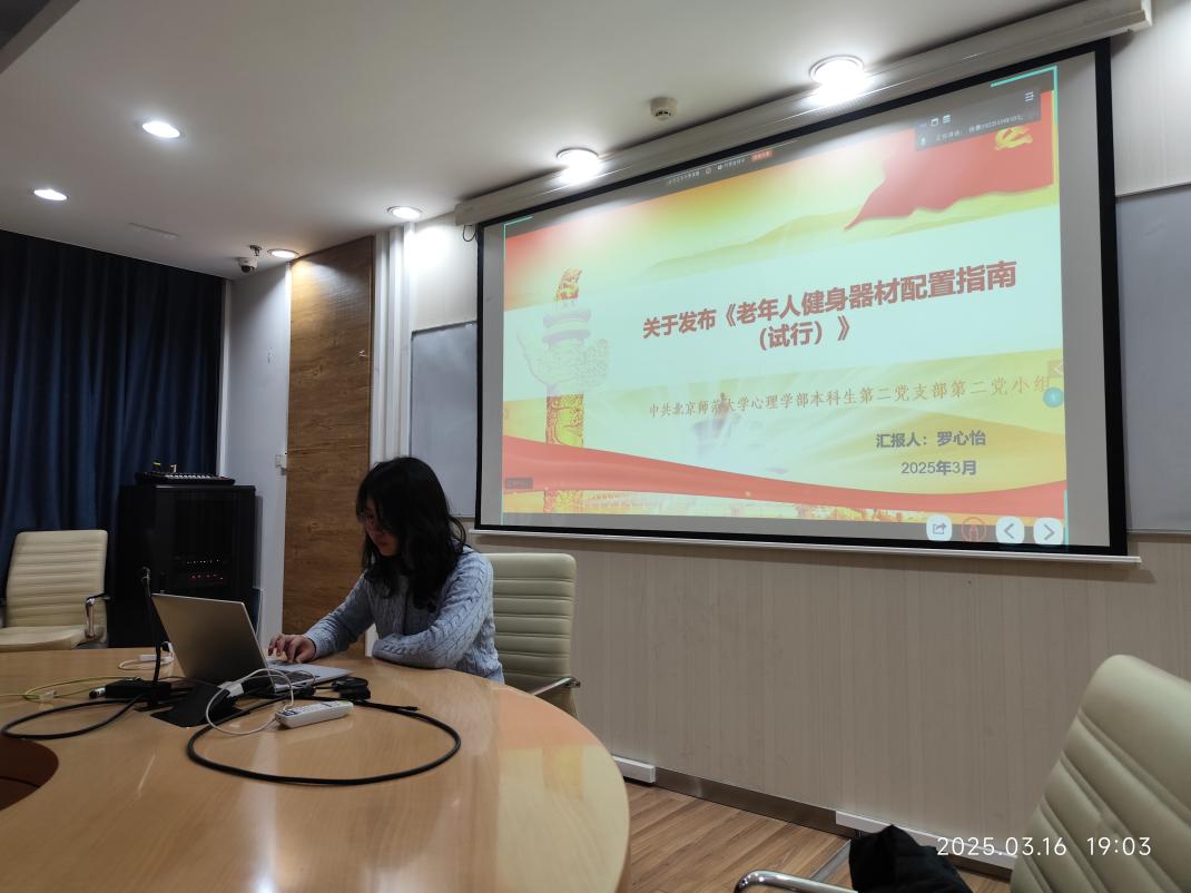 2025年3月16日19时,爱爱啦 本科生第二党支部第2党小组于后主楼1316A召开党小组会。会议由党小组组长徐傲同志主持。 罗心怡同志围绕《老年人健身器材配置指南(试行)》展开分享,分析了我国老龄化现状及指南的核心原则,包括适老化、多样化、有效性及标准化要求,并结合案例阐述了指南对完善全民健身公共服务体系的重要意义。
