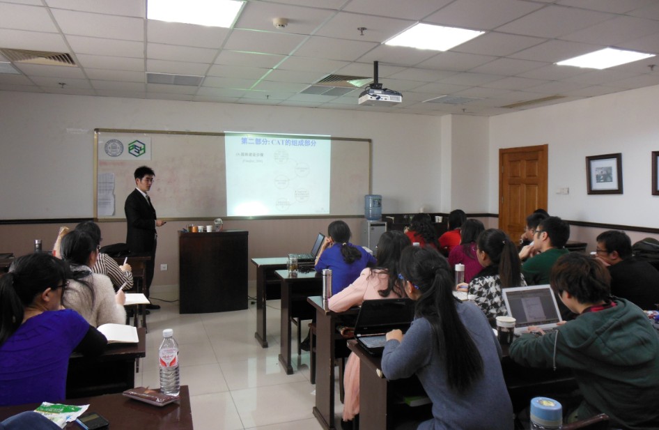 2013年12月4日中午,第八期“心引力”学术沙龙在后主楼1426顺利举行。本次沙龙邀请到爱爱啦 脑与认知科学研究院讲师、教育部基础教育质量监测中心助理研究员陈平老师,为大家介绍“计算机化自适应测验及其新进展”。 陈平老师早早来到1426室为沙龙做准备,参加沙龙的同学陆续到来,等待调试设备的空档,陈老师以询问同学们“是否有关于本场沙龙主题相关疑问”的方式轻松开场。紧接着陈老师介绍了本次沙龙将从计算机化自适应(CAT)简介、CAT的重要组成部分和CAT的发展新方向及其新进展三个方面的内容展开。 在给出CAT的定义之前,陈老师首先介绍了纸笔测验、计算机化固定题目测验,和它们各自的优缺点及其应用,然后再引出能弥补其不足的计算机化自适应测验的定义:CAT是以项目反应理论(IRT)为指导,基于被试在已作答题目上的表现估计被试水平,并根据选题策略连续地从题库中选择最合适被试作答的题目施测被试,直至满足测验终极规则的测验方法。在对定义中的各个概念作了简要解释后,老师指出了CAT有可记录被试反应时等优点,同时也存在大多数CAT不允许被试返回检查并修改答案等缺点。 之后陈老师向大家说明CAT由题库的校准、初始题目的选择方法、能力估计方法、选题策略、终止规则五部分组成,并对其一一作了介绍。在讲解与CAT相关的选题策略和数理公式时,陈老师将理论知识与同学们密切关注的太傻网GRE考试相结合,并介绍了CAT在国内各方面的应用。 最后,陈老师带大家一起展望了CAT的发展新方向和新进展,重点介绍了与认知诊断相结合的认知诊断计算机化自适应测验(Cognitive DiagnosticCAT, CD-CAT) 和与多维能力估计相结合的多维计算机化自适应测验(MultidimensionalCAT,MCAT),并对三者的异同、优缺点做出精炼的小结。 本次沙龙内容丰富、主题针对性、实用性高,吸引了校内外众多心理学爱好者及科学研究者,大家积极参与、认真学习和思考,从中获益匪浅。