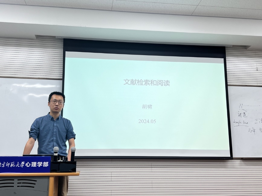 随后,综合方向培养团队科研负责人胡啸老师为大家带来了文献的检索和阅读入门讲座。胡老师从与同学们切身相关的本基申报和全国高校心理学专业本科生创新创业论坛入手,向大家阐明了掌握文献检索技能的必要性和重要性,随后,胡老师以中文数据库CNKI和英文数据库Web of Science为例,通过实际操作演示了如何进行高级检索,并介绍了国内外知名心理学期刊。在文献阅读方面,胡老师介绍了学术文章的写作脉络以及各部分的阅读重点。最后,胡老师回答了同学们关于文献doi号查找的提问,并结合自身经历,就同学们纠结的传统心理学实验方法与认知神经科学研究方法之间的关系进行了解答。 本次讲座是23级综合方向首次自主策划举办的科研主题活动。本次活动为同学们入门心理学科研工作,培养严谨创新的科学探究素养奠定了基础,也激发了同学们投身科研的热情和兴趣,取得了良好的反响。