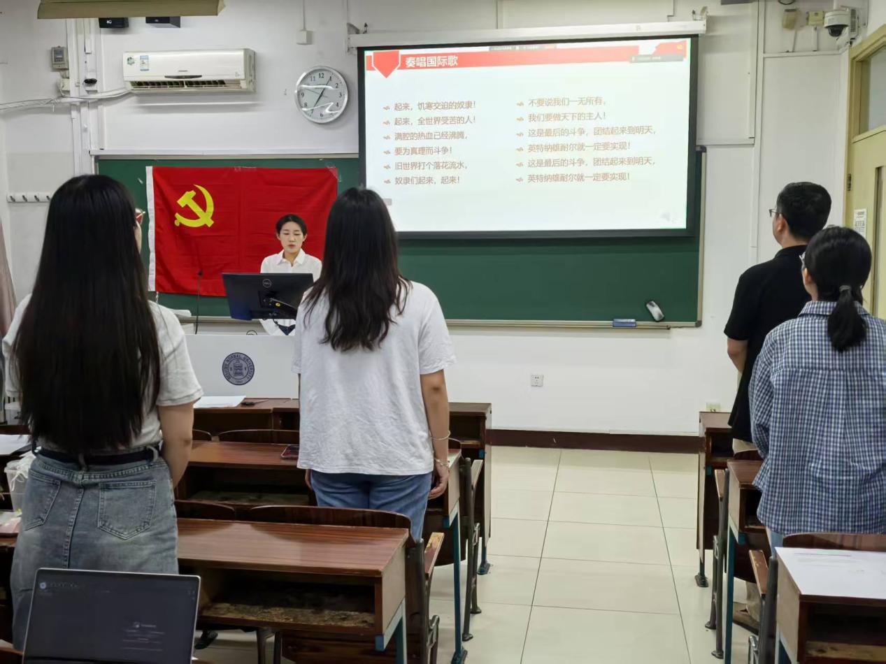 首先,党支部全体成员起立,合唱《国际歌》。