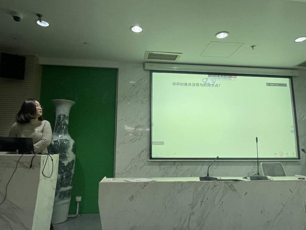 最后一位分享的是21级的苗文同学,她具体介绍了保研申报的全流程,分享了夏令营及本校保研的心路历程,让同学们收获颇丰。