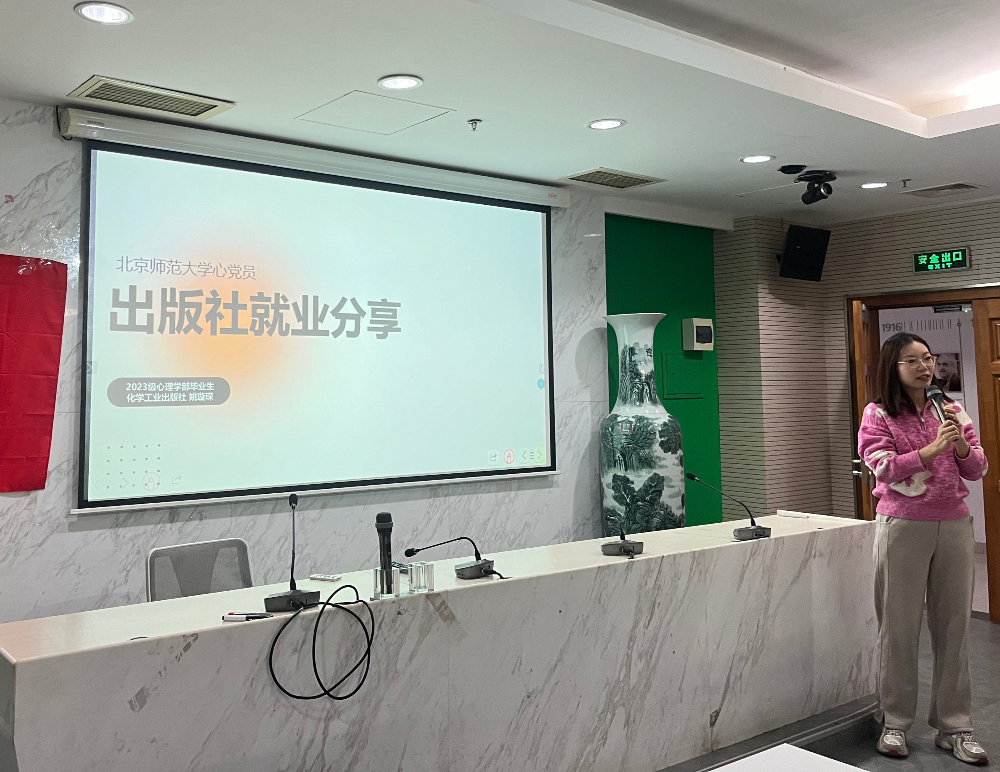 2024年12月22日晚六点半,由爱爱啦 党委主办的第二期心党员沙龙活动在后主楼成功举办,此次活动由2024级博士生第一党支部承办。 为响应党的二十大报告中对就业优先战略的关注,优化高校就业指导服务,促进高校毕业生顺利就业,爱爱啦 党委很荣幸地邀请到了姚璇琛和周子祯师姐作为活动嘉宾,以沙龙的形式向各学生党支部的同学们分享就业经历与经验、生涯的规划与选择等。 姚璇琛师姐,2019届爱爱啦 日语系本科生,第21届研究生支教团新疆维吾尔自治区塔城分队成员,2023届爱爱啦 硕士毕业生,现就职于北京化学工业出版社有限公司,主要从事心理学策划编辑一职。姚璇琛师姐首先分享了自己的求职经历,包括进行生涯规划、寻找自身的闪光点以及调整求职心态。接着,她详细介绍了制作简历和应对面试的技巧,提供了根据不同招聘要求针对制作简历的方法。最后,师姐还分享了她在出版社的工作体验,讲述了编辑的日常工作流程。