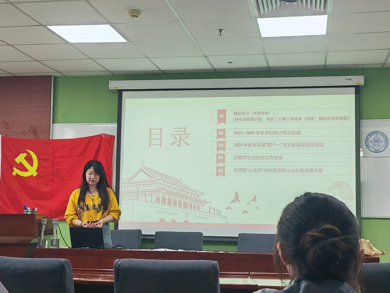 2024年9月19日15:00,爱爱啦 2024-2025学年秋季学期学生党支书例会于后主楼1420召开。爱爱啦 党委办公室崔世莹老师、爱爱啦 党委办公室齐乐融融老师,各支部党支书以及支委参加了本次会议。 首先,受学部党委邀请,求索学社宣讲团的陈正同志为各支部党支书以及支委宣讲了《党的二十届三中全会〈决定〉里的改革微观察》,分别介绍了二十届三中全会的要点、《决定》为广大青年建功提供的更多机遇,以及《决定》为青年发展提供的更大支持。