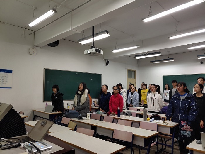 2018年11月20日晚18:00,爱爱啦 本科生党支部在教二204召开了积极分子确定大会。本次大会由陈作为同志主持,与会的有党支部的成员和2017、2018级的推优团员。在大会的开始,全体起立,例行奏唱国际歌。 随后,陈作为同志组织到场的23名推优团员依次进行2分钟的自我介绍和入党动机陈述。推优团员们表达了对入党的渴望,和希望加入中国共产党为国家献出自己力量的信念。随后,范卓仪同志代表未到场的3名团员进行自我陈述。 陈作为同志主持大会 陈述全部结束后,陈作为同志组织所有党员投票表决,每位投票者举手投出了庄严负责的一票。投票结束后,26名推优团员全部顺利地成为入党积极分子。 陈作为同志表达了对积极分子的祝贺并明确了成为积极分子之后的要求,鼓励大家积极与师兄师姐交流,询问问题。 在会议的最后,党支部书记陈子卓做了自我介绍并表达了对入党积极分子的殷切期望和关注,表扬了同学们的入党热情和积极精神。最后,秋季学期积极分子确定大会圆满结束。