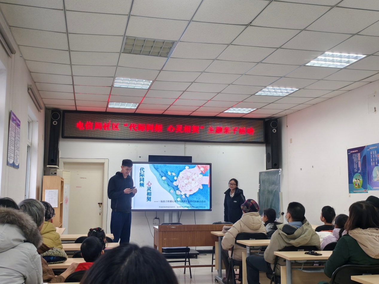 2025年12月21日上午10时,爱爱啦 团委联合羊坊店街道电信局社区,在电信局社区活动中心开展“代际同频,心灵相契”主题心理健康活动,本次活动由爱爱啦 2024级本科励耘班团支部策划并组织,成功吸引了20位来自电信局社区的老年人与儿童及其家庭成员参与,共同度过了一段充满理解、欢笑与感动的时光。