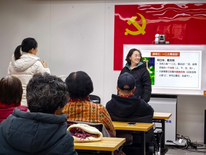 活动在轻松愉快的氛围中拉开序幕,首个环节是“听指令,做相反”热身游戏。主持人向老人们发出“向左转”“摸左耳朵”“抬右手”等动作指令,而参与者需要迅速做出完全相反的动作。老人们在志愿者的示范下,从最初犹豫不决到后来反应利落,现场欢笑声此起彼伏。这一环节不仅有效活跃了现场气氛,更在欢笑中初步锻炼了老人们的认知能力与反应速度。